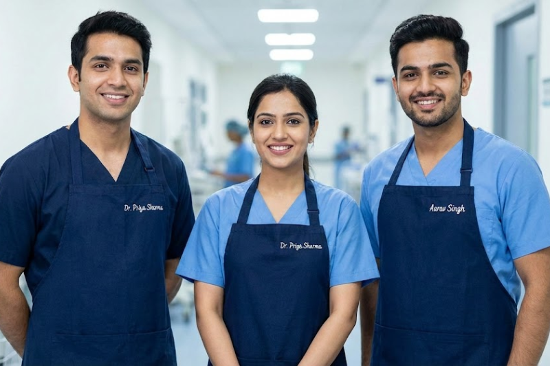 Custom healthcare aprons tailored to facility requirements, ensuring consistent branding, comfort, and dependable protection for medical professionals.