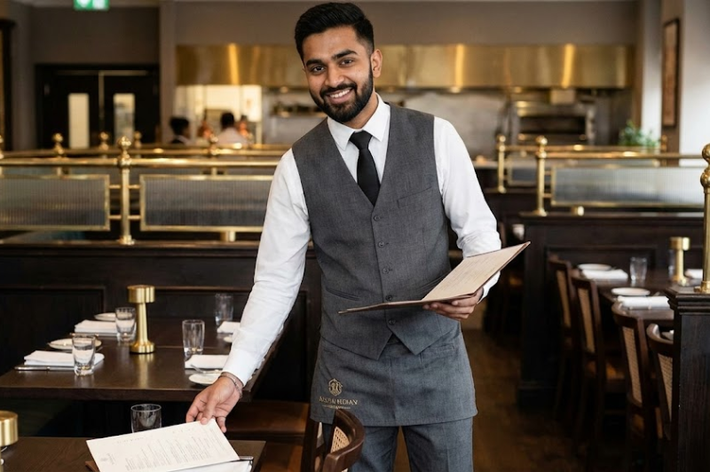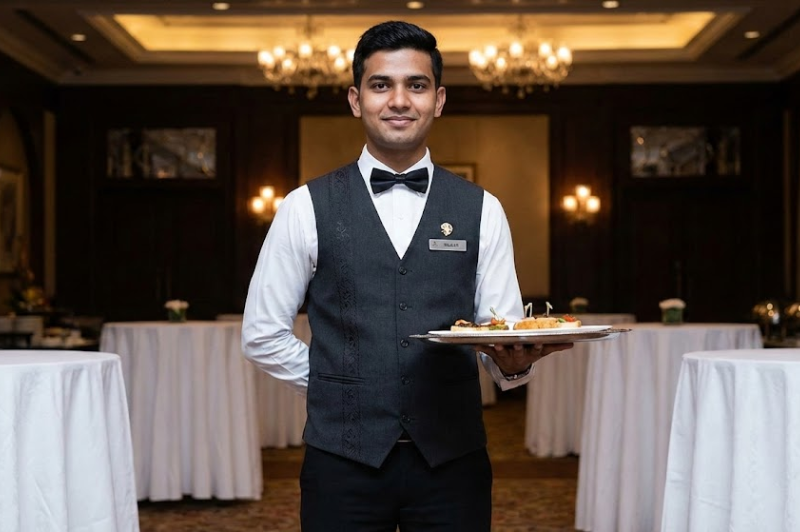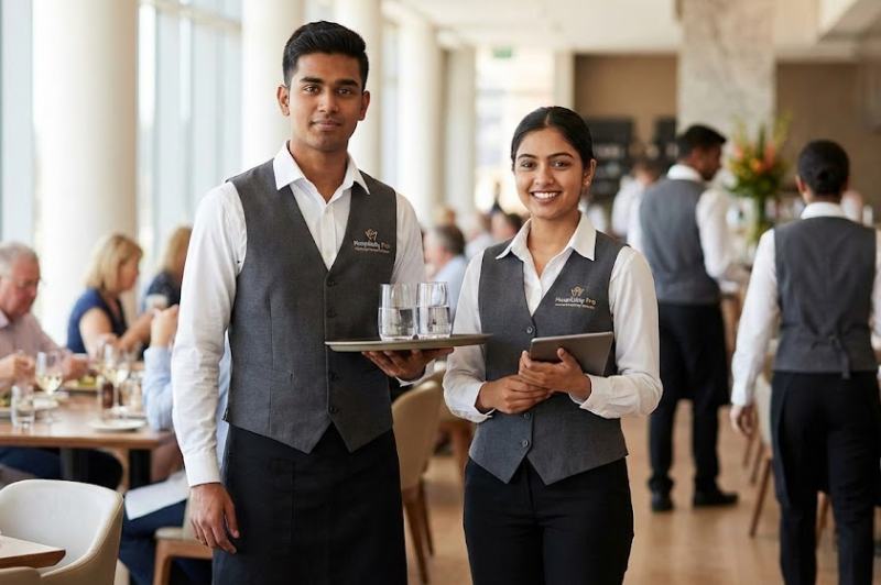 Smart waiter and waitress uniforms crafted for comfort and mobility, ensuring polished presentation and smooth service throughout busy hospitality hours.