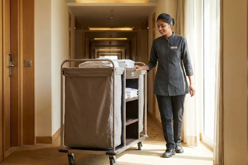 Comfortable hotel housekeeping uniforms designed for daily operations, featuring durable fabrics, easy movement, and a neat professional appearance.