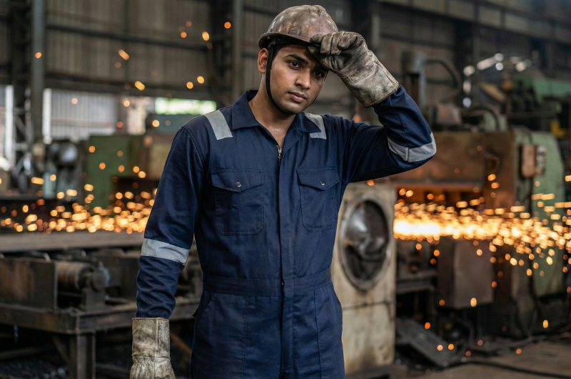 Breathable cotton boiler suits providing superior comfort and flexibility, ideal for long working hours in factories and industrial workplaces.
