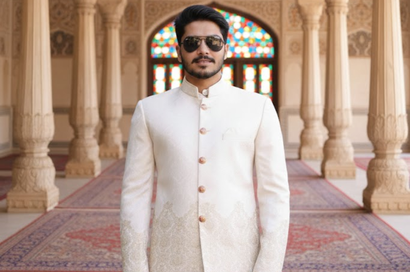 Custom tailored Jodhpuri coats made to reflect brand identity, delivering perfect fit, premium quality, and timeless elegance for event professionals.