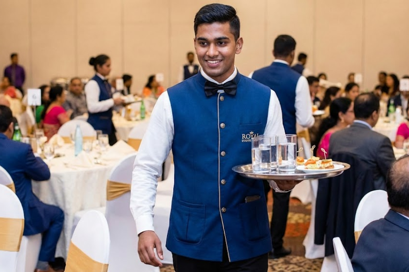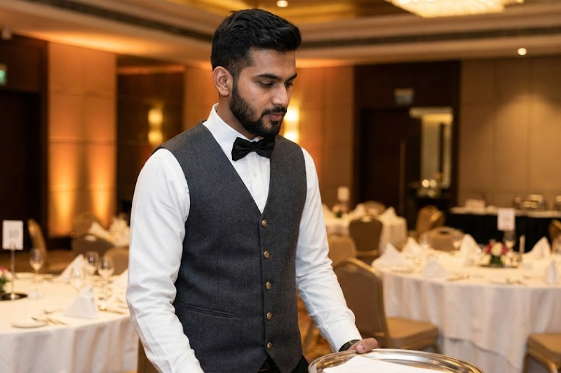 Banquet service waistcoats crafted for large gatherings, combining durability, ease of movement, and a sophisticated hospitality look.