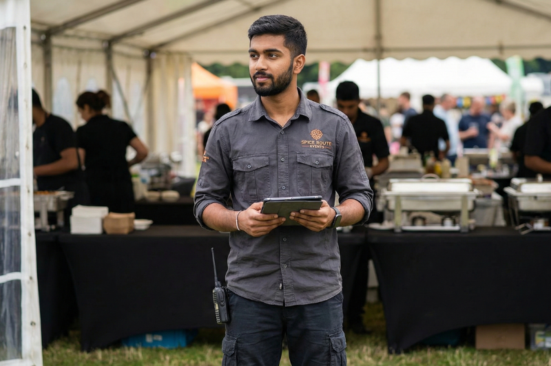 Custom utility uniforms tailored to brand requirements, delivering consistent appearance, comfort, and durability for catering and event teams.