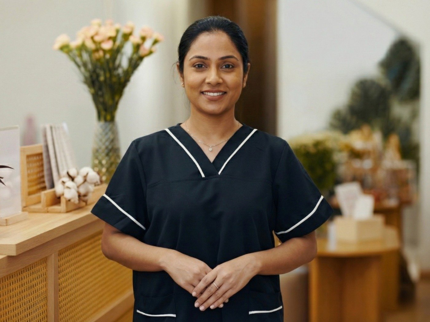 Relaxed yet refined resort and spa uniforms featuring breathable fabrics, soothing designs, and premium luxurious guest wellness experience.